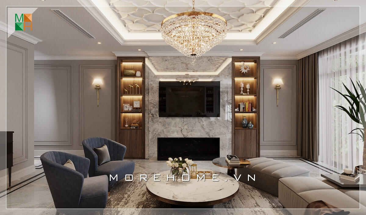 Thiết kế không gian phòng khách đẹp, cao cấp mang phong cách tân cổ điển cho chung cư, nhà phố, biệt thự, căn hộ penthouse.