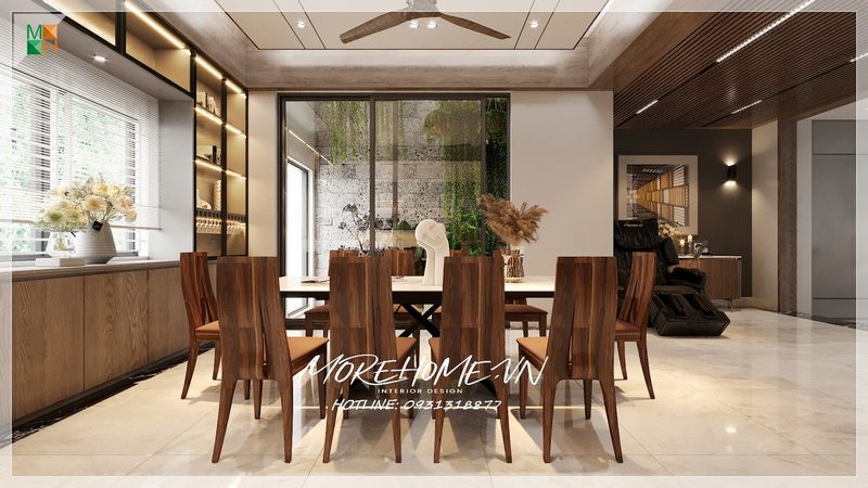 Mang phong cách thiết kế theo kiểu hiện đại, không gian phòng ăn luôn tạo cảm giác ấm áp, gần gũi khi bước chân vào căn phòng. Có thể nói phòng ăn là nơi giúp tình đoàn kết và gắn bó yêu thương giữa các thành viên trong gia đình.