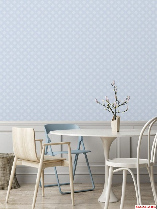 Giấy dán tường phòng ăn đẹp họa tiết hình thoi trắng trong nền màu xanh lam